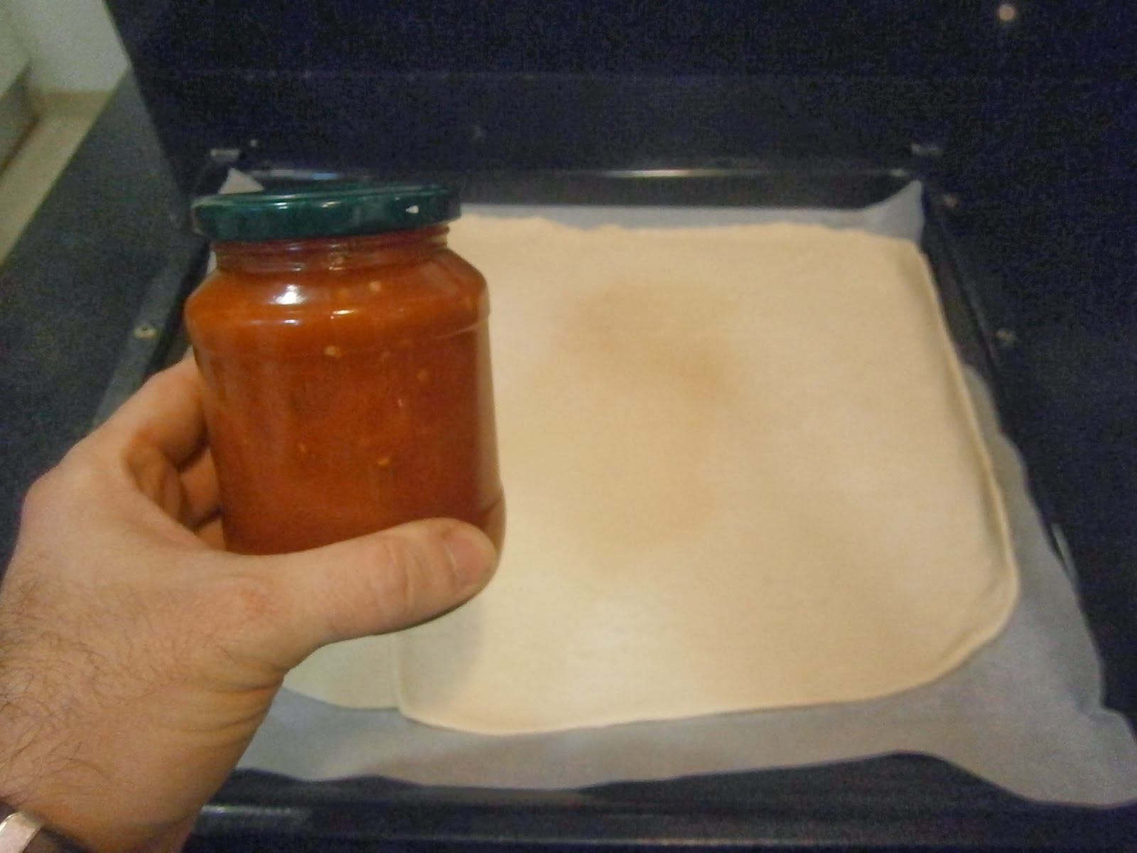 Colocar una capa de salsa de tomate...