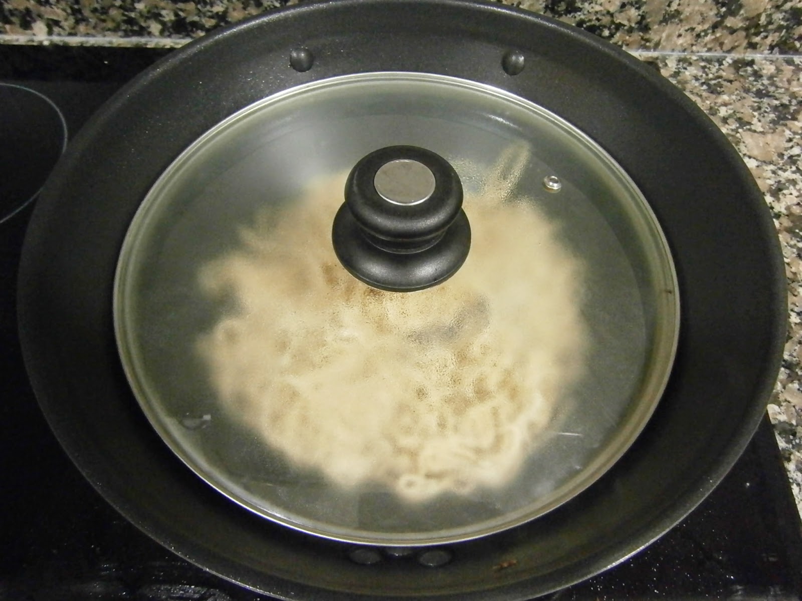 Una vez listos los ingredientes, empezamos con los fideos... Añadir dos vasos de agua en el Wok, y cuando empiece a hervir, añadir los fideos secos y tapar...