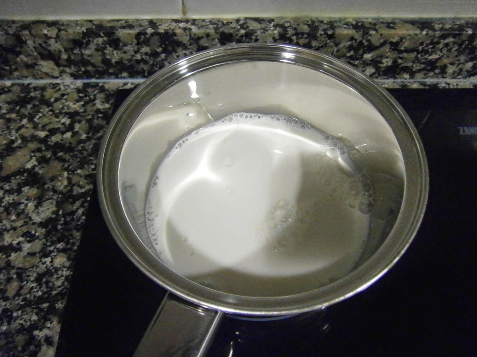 Mientras vamos preparando una crema calentando en una cazuela la leche con el azúcar y el azúcar avainillado...