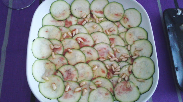 And the Zuccini Carpacció with Raspberry Vinager is ready...