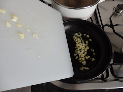Meanwhile golden the garlic well chopped in a pan with olive oil...