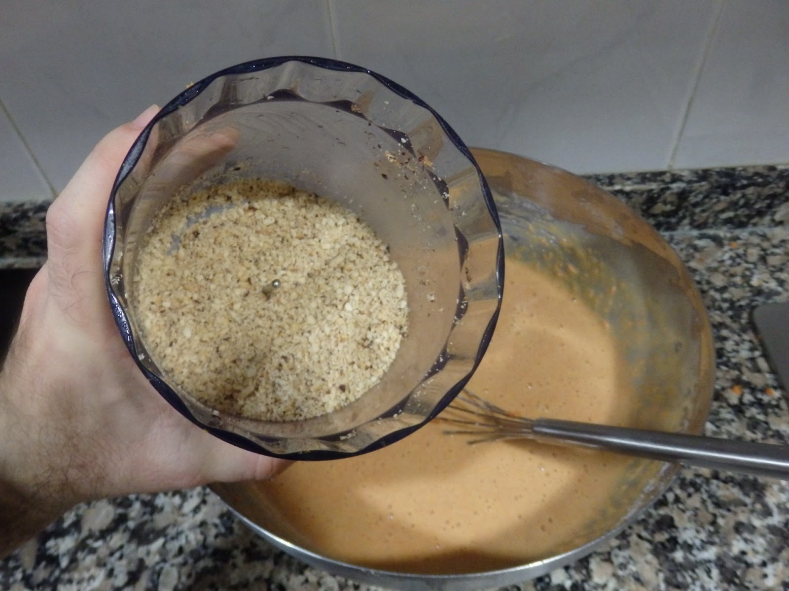 Triturar las avellanas y añadir a la masa... Mezclar bien...