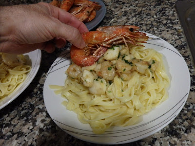 And the Tagliatelle with Prawns, Choco and Big Prawns in Garlic is ready...