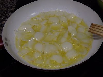 To make this recipe we begin by frying the onion cut in small portions in a pan with olive oil... Add a little of salt...