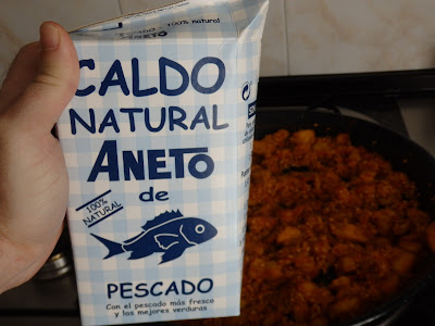 Añadir el Caldo Aneto de Fideua (doble cantidad que de fideos) y dejar hervir... Corregir de sal...