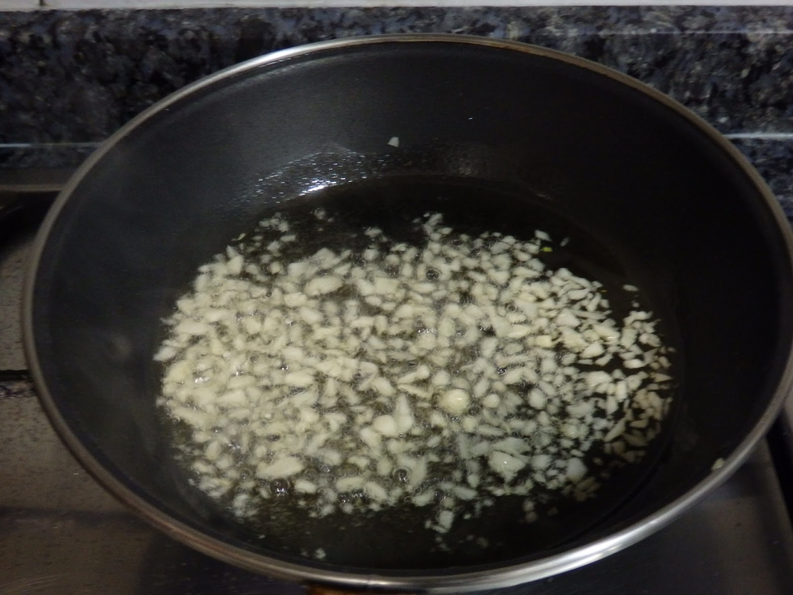 At the same time, golden the garlic well chopped in a pan with olive oil, and fry 2-3 minutes the gulas... Add salt...