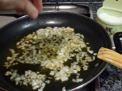 In the same oil fry the onion well chopped (with a little of salt) and the cloves of garlic well chopped...