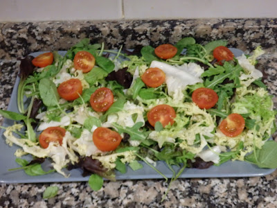 And the Salad with Egg, Fresh Cheese, Smoked Salmon and Artichoke Hearts is ready...