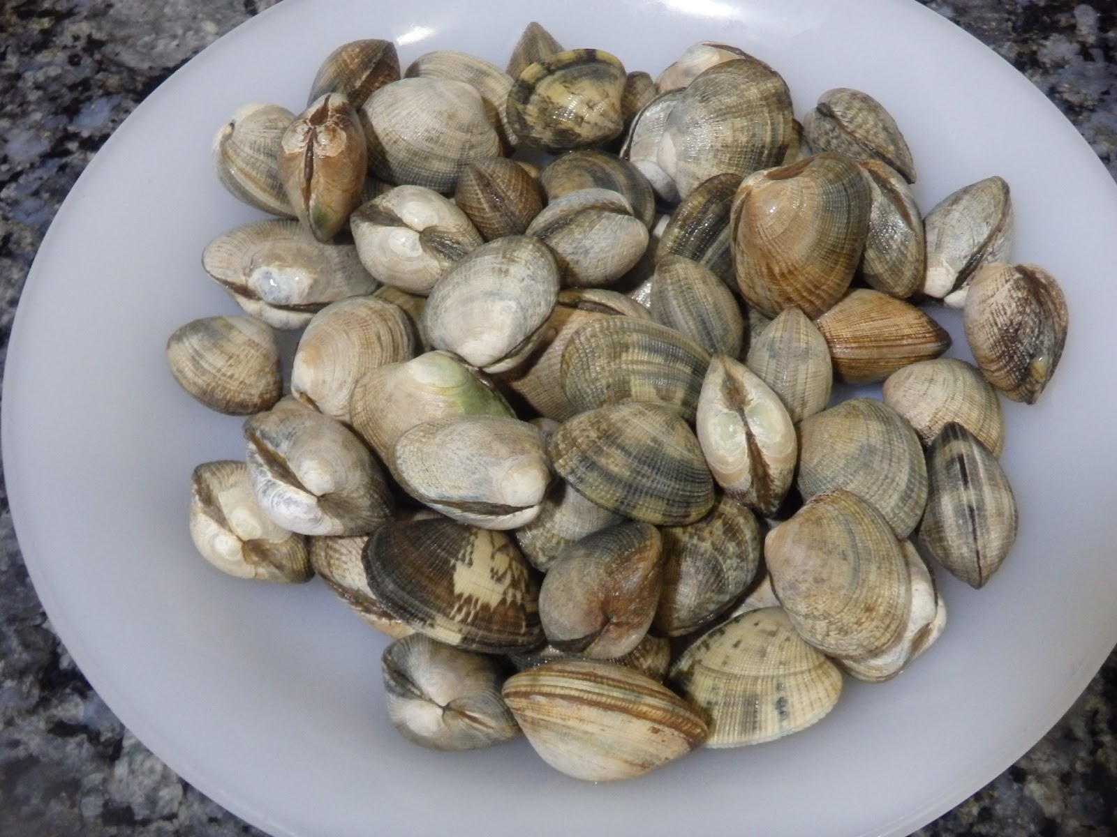 Cuando empiece a hervir, añadir las almejas, los galets y las gambas y cocinar hasta que los galets estén listos...