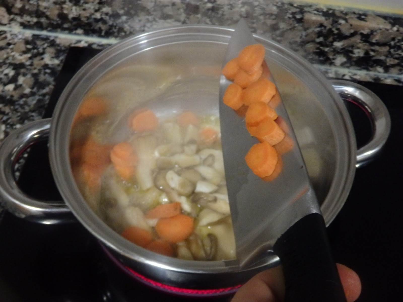 Mientras, dorar los ajos bien picados en una sartén con aceite de oliva virgen extra...