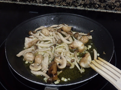 Escurrir la pasta y mezclar con los boletus al ajillo...