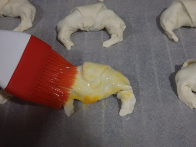 Enrollar los croissants y colocar en una bandeja para el horno...