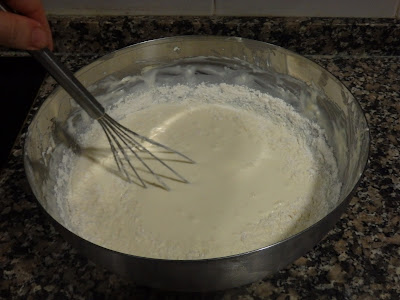Finalmente, añadir la harina tamizándola y mezclar bien...