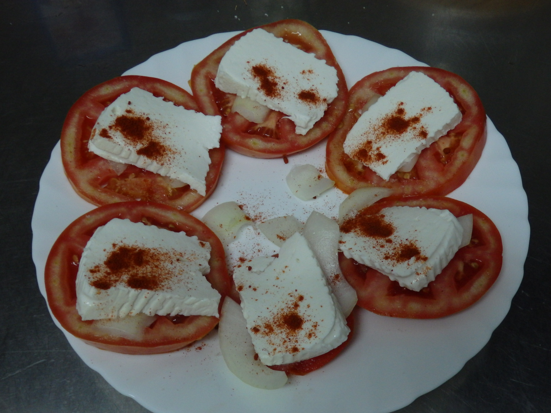 And the Tomato, Onion, Fresh Goat Cheese, Vera Paprika and Marjoram Salad is ready...