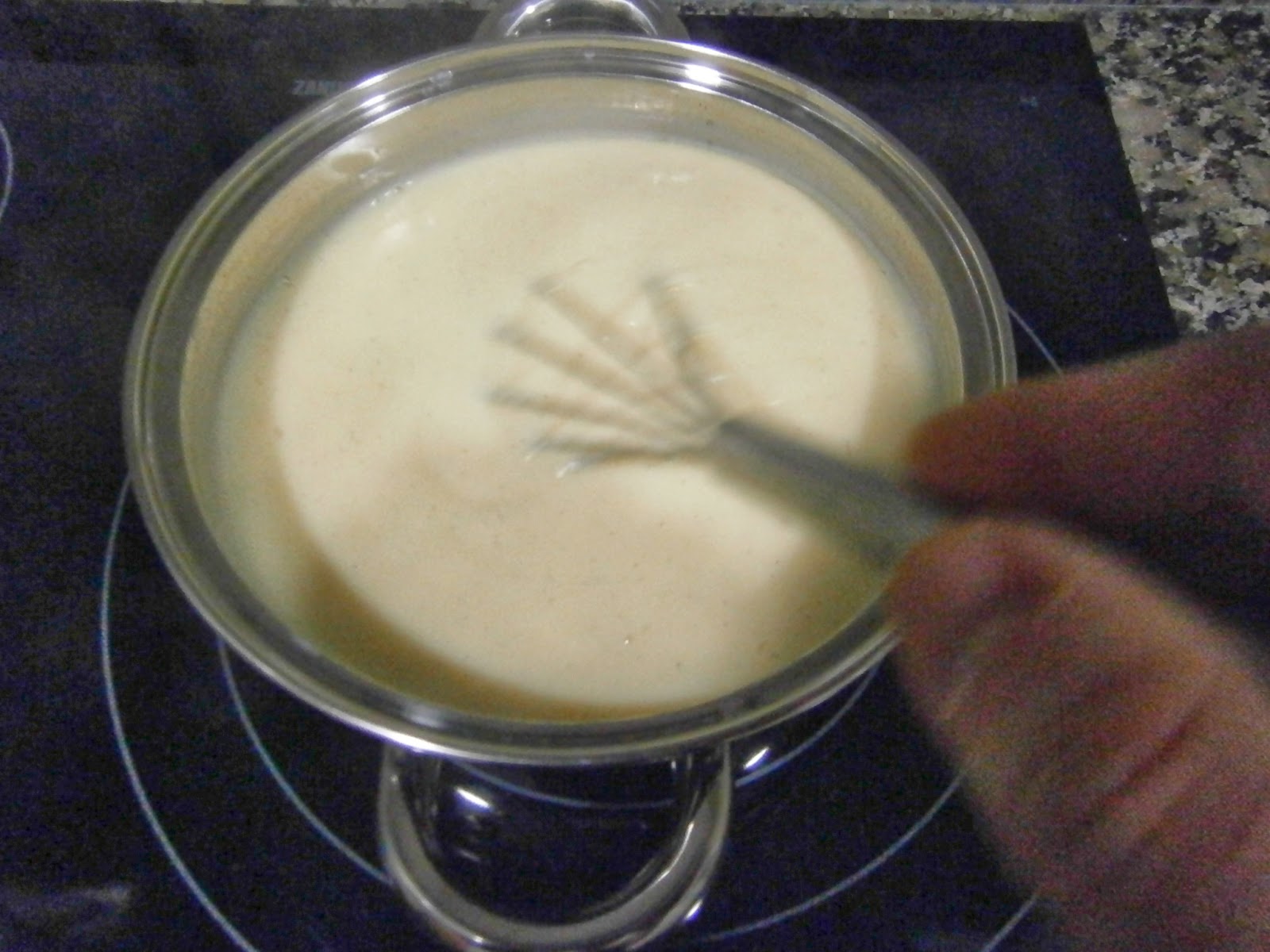 Disuelve dos cucharadas de maizena en un vaso de leche y añádelos a los huevos... Mezclar bien...