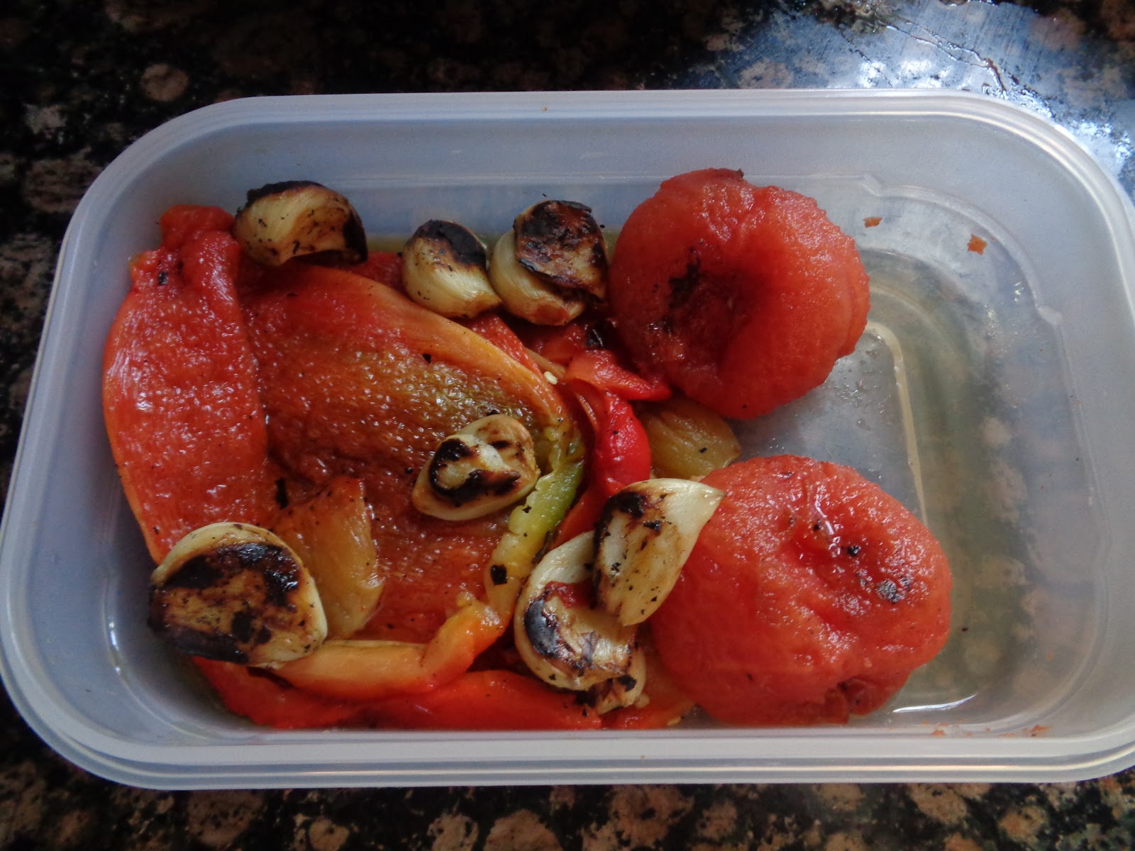 Para preparar la salsa Romesco primero hay que asar la cabeza de ajos, el pimiento rojo y los tomates. Se puede hacer tanto en una sartén como en el horno, con un poco de sal y aceite de oliva... Pelarlos y reservar... Esto se realizó el dia anterior a hacer la salsa...