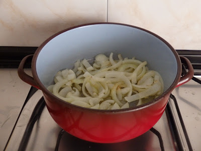 To make this soup we begin by frying the onions cut in julienne in a saucepan with extra virgin olive oil... Add salt...